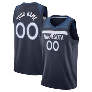 Custom M.Timberwolves Authentic Jersey Icon Edition Navy Stitched Basketball Jersey