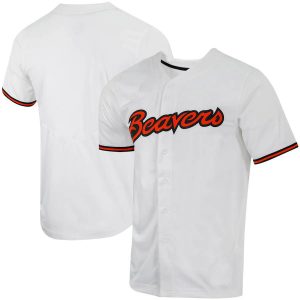 O.State Beavers Replica Full-Button Baseball Jersey White Stitched American College Jerseys