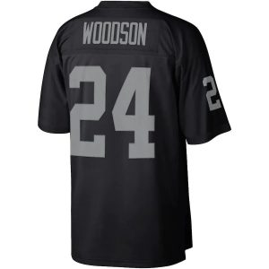 LV. Raiders #24 Charles Woodson Mitchell & Ness Black Legacy Replica Jersey Stitched American Football Jerseys