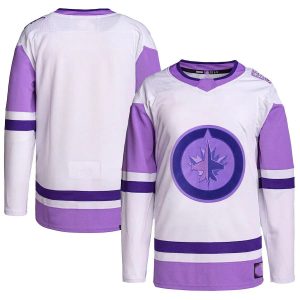 W.Jets Hockey Fights Cancer Primegreen Authentic Blank Practice Jersey White Purple Stitched American Hockey Jerseys