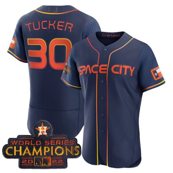 #30 Kyle Tucker Houston Astros blue 2023 SPACE CITY CHAMPIONS FLEX JERSEY ¨C ALL STITCHED Baseball Jerseys