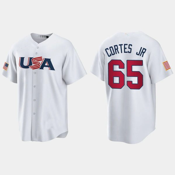 #65 NESTOR CORTES JR. NEW YORK YANKEES 2023 WORLD BASEBALL CLASSIC USA REPLICA JERSEY ¨C WHITE Stitches Baseball Jerseys