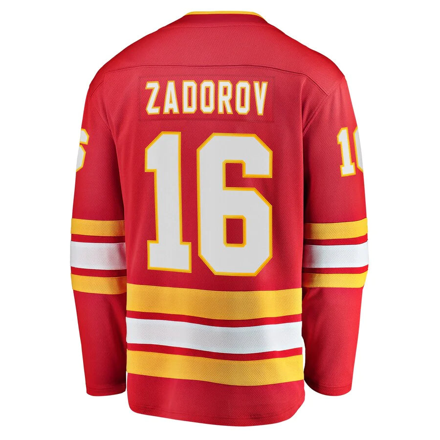 C.Flames #16 Nikita Zadorov Fanatics Branded Home Breakaway Player Jersey Red Stitched American Hockey Jerseys