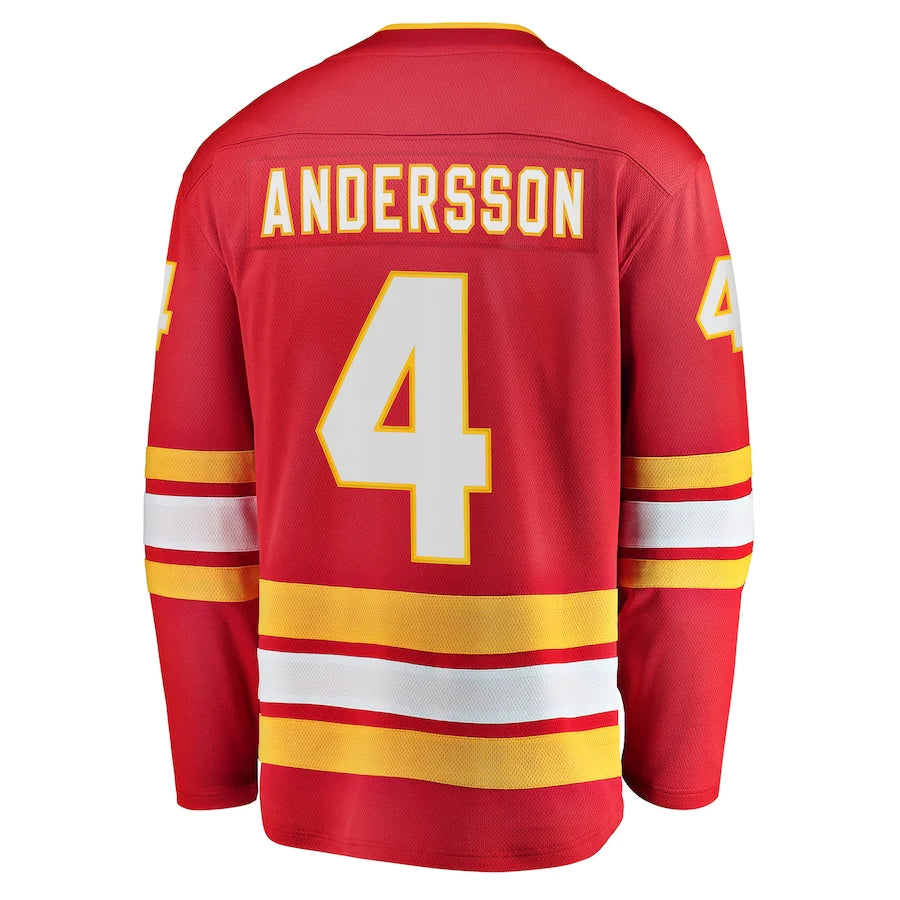C.Flames #4 Rasmus Andersson Fanatics Branded Home Team Breakaway Player Jersey Red Stitched American Hockey Jerseys