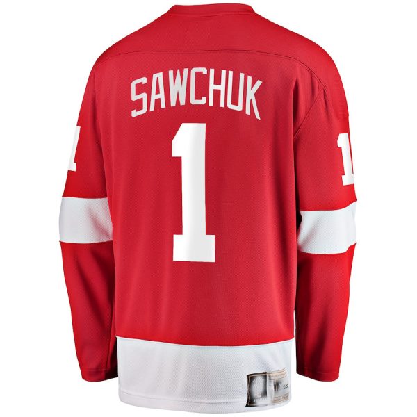 D.Red Wings #1 Terry Sawchuk Fanatics Branded Premier Breakaway Retired Player Jersey Red Stitched American Hockey Jerseys