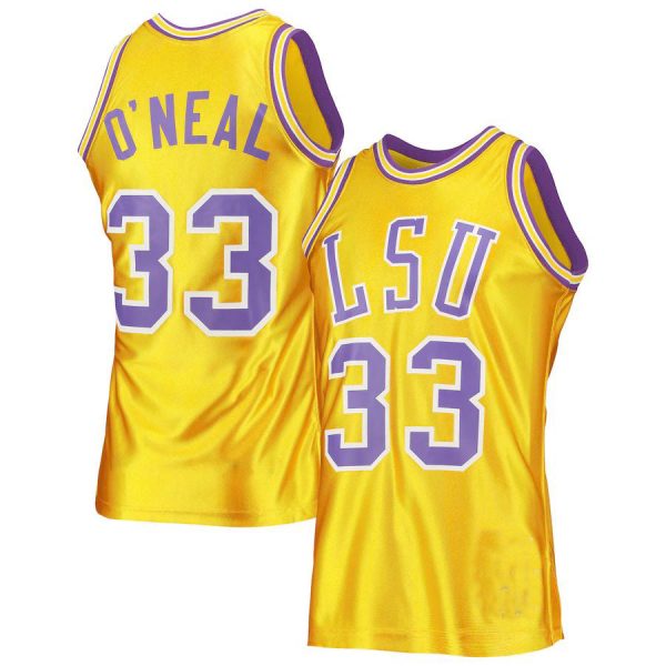 L.Tigers #33 Shaquille O'Neal Mitchell & Ness 1990-91 Authentic Throwback Gold Basketball Jersey Stitched American College Jerseys