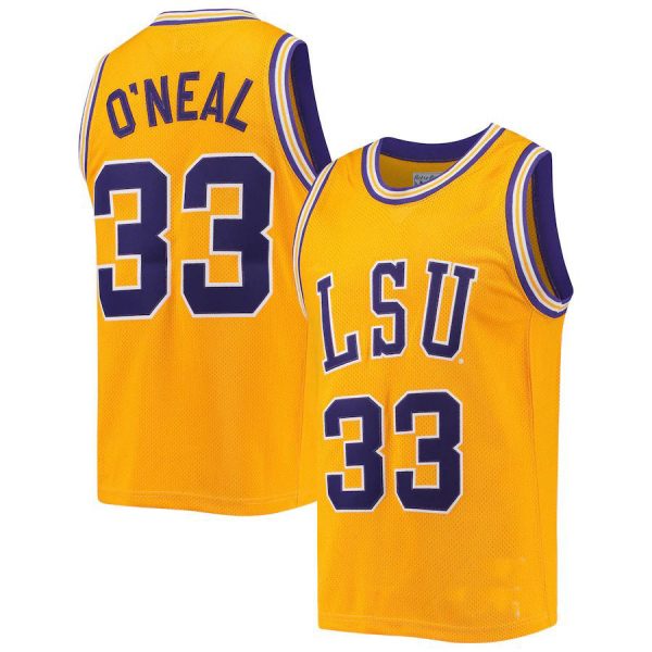 L.Tigers #33 Shaquille O'Neal Original Retro Brand Commemorative Classic Gold Basketball Jersey Stitched American College Jerseys