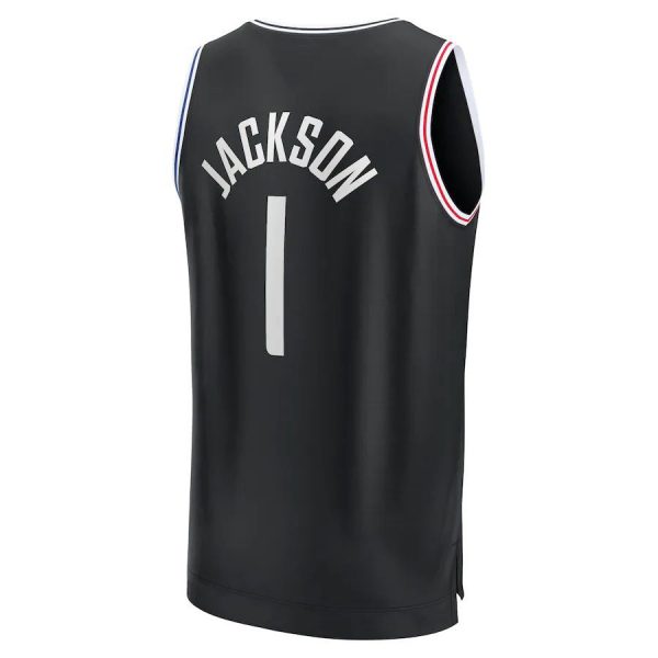 LA.Clippers #1 Reggie Jackson Fanatics Branded 2022-23 Fastbreak Jersey City Edition Black Stitched American Basketball Jersey