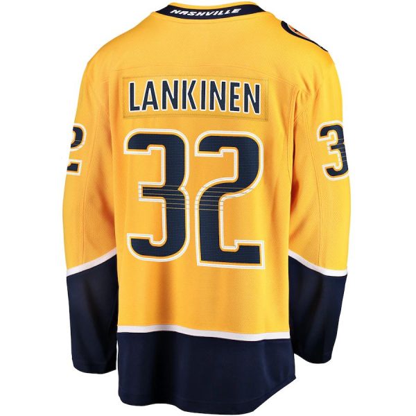 N.Predators #32 Kevin Lankinen Fanatics Branded Home Breakaway Player Jersey Gold Stitched American Hockey Jerseys